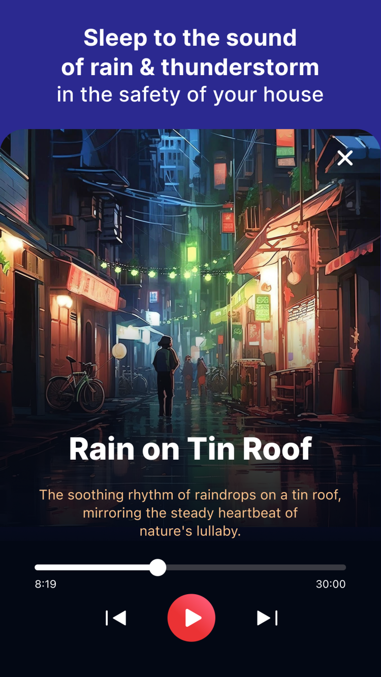 Ambiance est une application mobile conçue pour vous aider à vous sentir mieux. Elle propose un vaste catalogue de scènes thématiques : des sons naturels apaisants comme la pluie ou les vagues de l'océan, aux ambiances intérieures comme une bibliothèque paisible, la douche ou le sèche-cheveux. C'est l'outil idéal pour créer un environnement audio personnalisé, favorisant votre bien-être mental, votre productivité ou votre pleine conscience. Tous les sons collectés dans l'application favorisent la relaxation et peuvent créer une merveilleuse bande-son pour la méditation ou la sonothérapie. Vous avez du mal à vous concentrer au travail ? Masquez ensuite les sons gênants grâce aux collections de sons de cette application, par exemple :