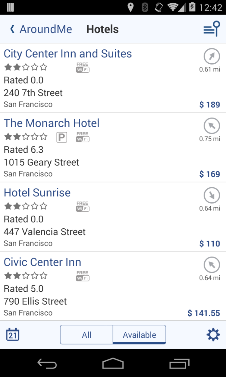 Avez-vous déjà passé beaucoup de temps à chercher un magasin ou un lieu dans les rues d'une ville inconnue ? Bien sûr, de nombreuses applications proposent déjà la recherche d'établissements sur la carte, mais elles sont peu utiles lorsque vous vous trouvez dans des villes ou des pays inconnus où il peut être difficile de s'orienter. Dans ce cas, AroundMe vous sera d'une grande aide. L'application utilise les données de votre position actuelle pour trouver tous les établissements à proximité. Bien sûr, vous n'avez pas besoin de chercher l'objet souhaité dans une liste interminable. L'application trie les objets par catégories :