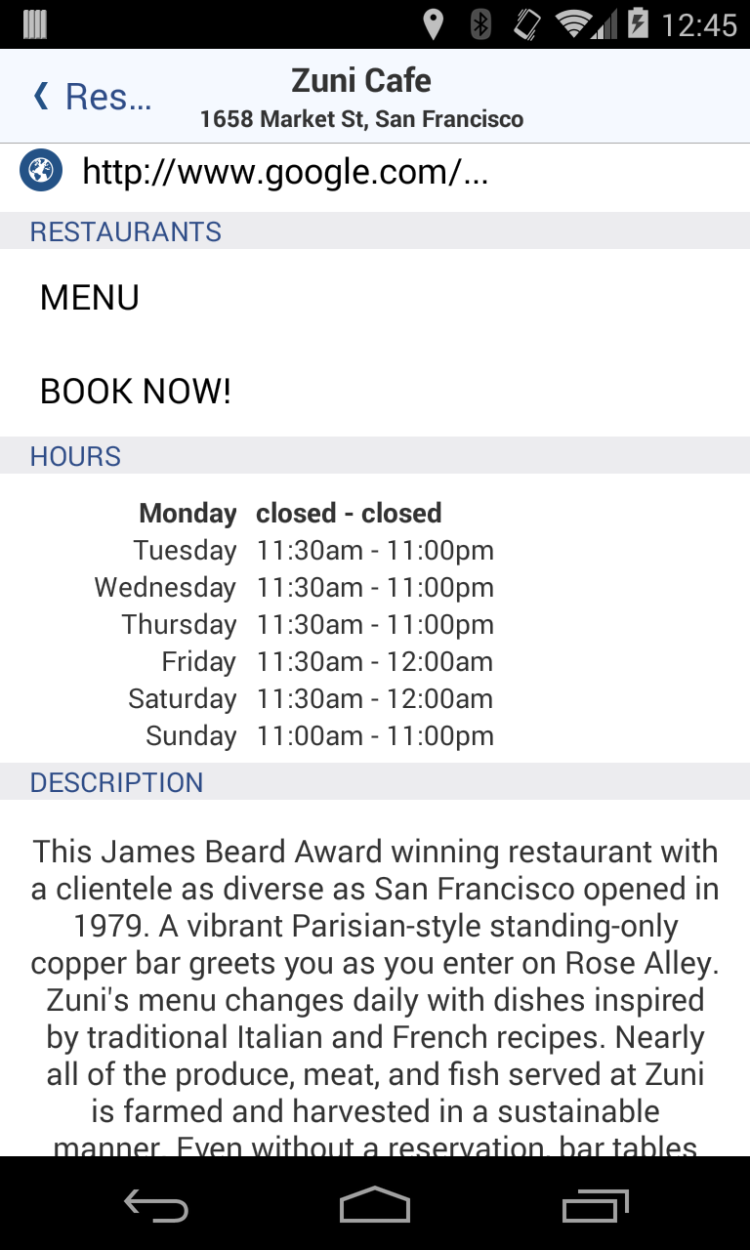 Il vous suffit de sélectionner la catégorie souhaitée et de parcourir la liste des lieux trouvés. Vous pouvez également activer la vue cartographique pour localiser rapidement l'entreprise la plus adaptée. La dernière version de l'application AroundMe contient également des informations supplémentaires sur les entreprises trouvées, notamment :