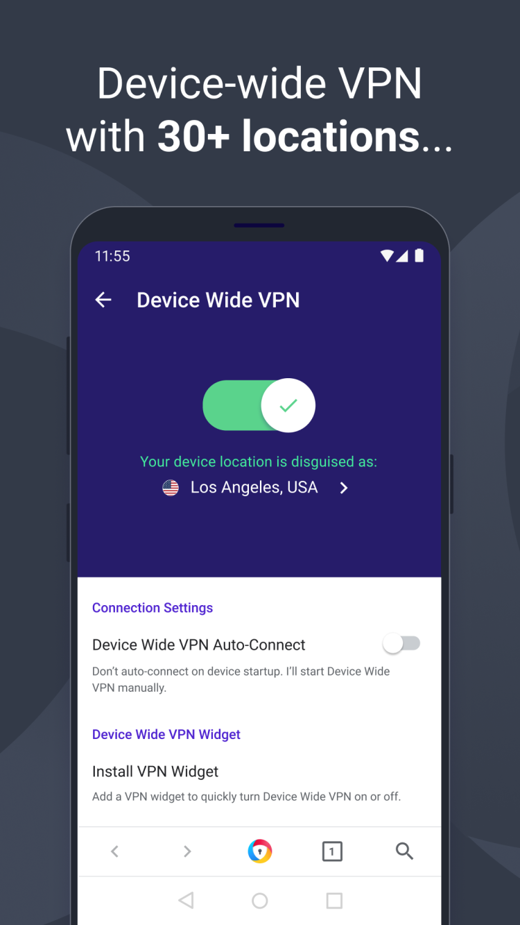 Si vous cherchez un moyen simple de naviguer anonymement sur le web, essayez AVG Secure Browser. Conçu par des experts en cybersécurité, ce logiciel offre une sécurité avancée sans compromettre la rapidité et la simplicité d'utilisation. Sa principale fonctionnalité est sans doute son VPN intégré. Il est conçu pour masquer votre localisation et votre identité, même lorsque vous vous connectez à des réseaux publics. Il propose plus de 30 serveurs parmi lesquels choisir, pour un accès illimité à vos sites web préférés, contournant la censure. Il est important de noter que cet outil ne fonctionne pas uniquement dans le navigateur. Vous pouvez activer la protection sur tout l'appareil, garantissant ainsi la confidentialité de toutes vos activités en ligne. Et grâce à la fonction de connexion automatique, vous n'avez même pas besoin d'activer la protection manuellement : l'application se connecte à un serveur sécurisé au démarrage de l'appareil.