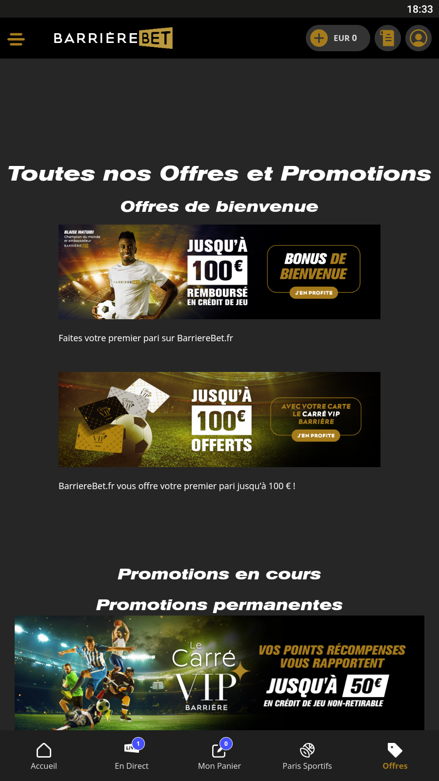 Tous les bookmakers offrent à leurs clients toutes sortes d’incitations et de récompenses. Il peut s’agir de paris gratuits, d’argent bonus et bien plus encore. Barrière Bet ne fait pas exception. Le bureau lance régulièrement de promotions pour les nouveaux clients. Cela nécessite souvent de s'inscrire et de déposer de l'argent sur un compte. Dans certains cas, vous devrez parier sur certains événements ou remplir d’autres conditions. Ensuite, nous vous dirons ce qui est possible de télécharger et d’obtenir un bonus de bienvenue sur cette plateforme populaire.