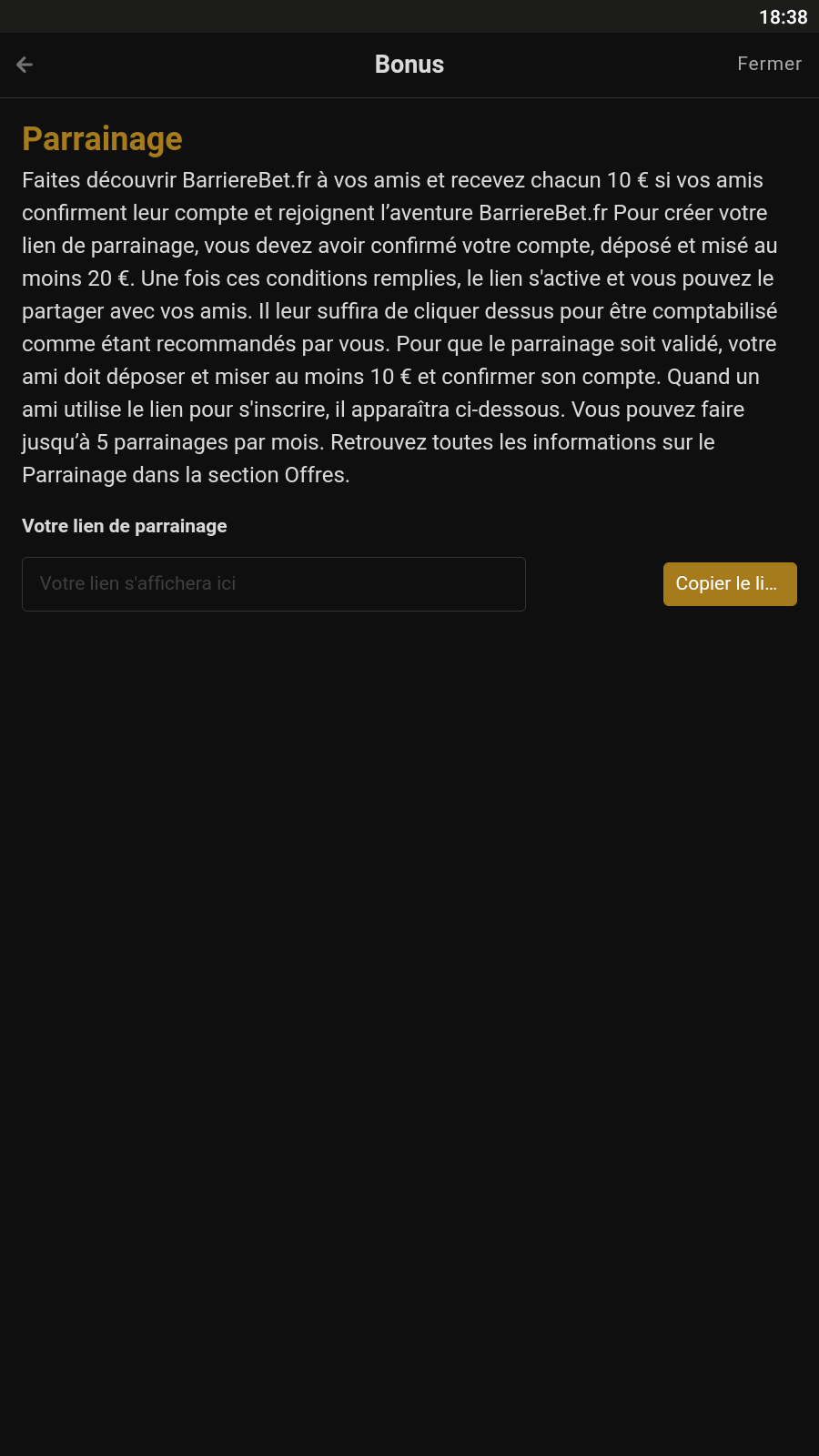 Pour évaluer Barriere Bet vous devez vous enregistrer ou vous connecter