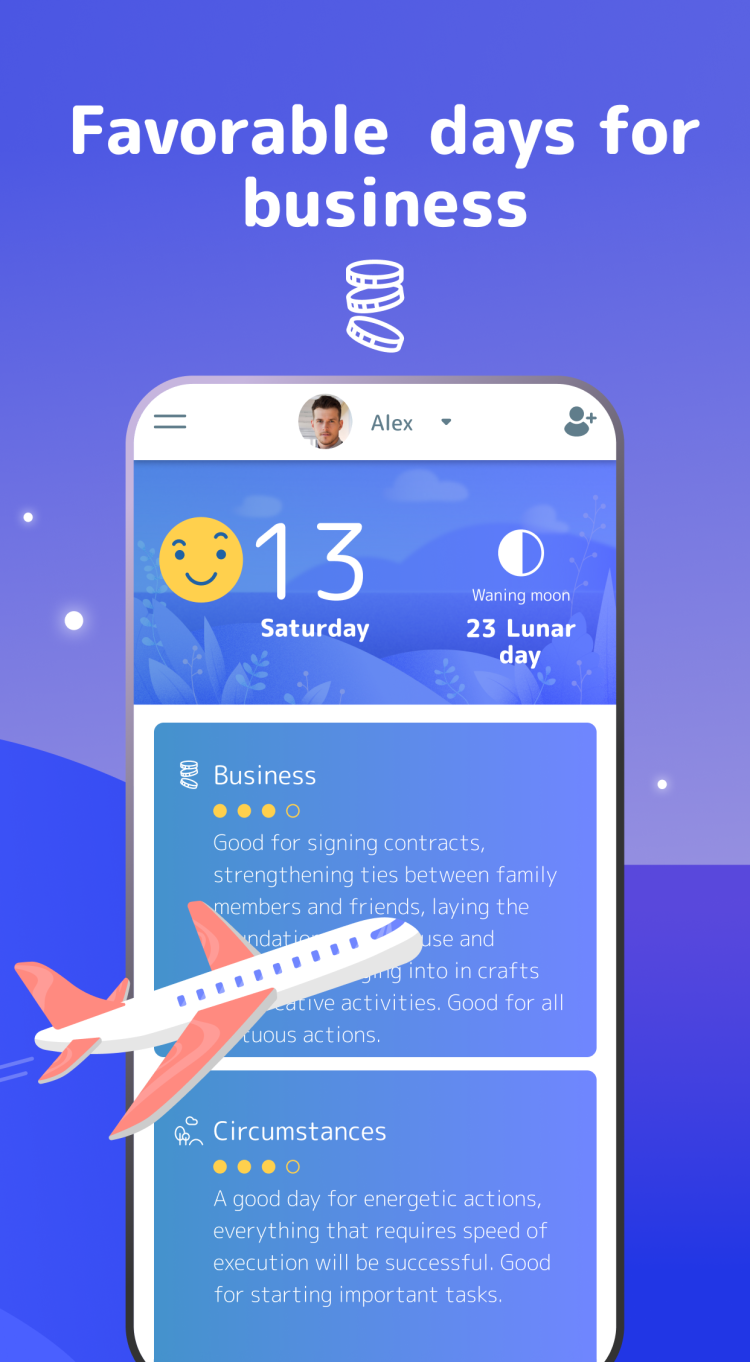 Ce programme est conçu pour vous aider à prendre des décisions importantes. Lors de sa première utilisation, il vous sera demandé de fournir des informations personnelles : votre nom et votre date de naissance. À partir de ces informations, le programme créera un horoscope personnalisé et indiquera les jours favorables et défavorables. Ces informations sont indiquées par différentes couleurs pour plus de clarté :