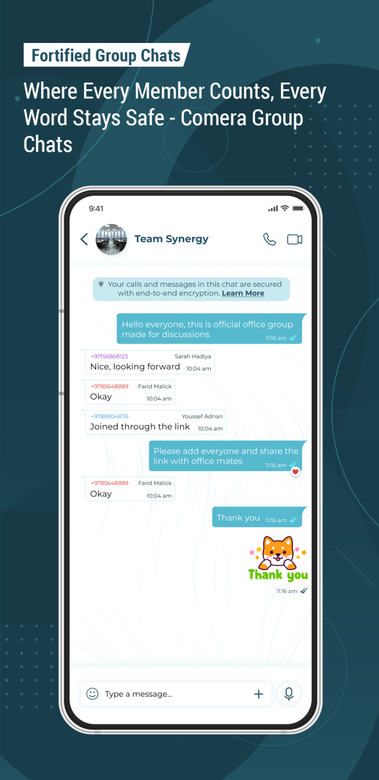 Ce logiciel plaira à tous ceux qui recherchent une application pratique et sécurisée pour rester en contact avec leurs proches. Conçu pour la confidentialité, Comera rend vos conversations en ligne privées et inaccessibles aux tiers grâce à un chiffrement de bout en bout inviolable. Cela ne signifie pas pour autant que vos conversations doivent être excessivement lentes. Comera garantit une communication fluide et confortable lors de vos conversations individuelles et de groupe, et vous permet de voir et d'entendre vos proches les appeler via Internet. Plus important encore, ce logiciel offre un son cristallin et une qualité vidéo HD pour vos appels via Wi-Fi ou réseaux mobiles. Rester connecté, même loin de chez soi, est précieux ; c'est pourquoi Comera élimine les frais d'appels internationaux et n'impose aucune limite de temps.