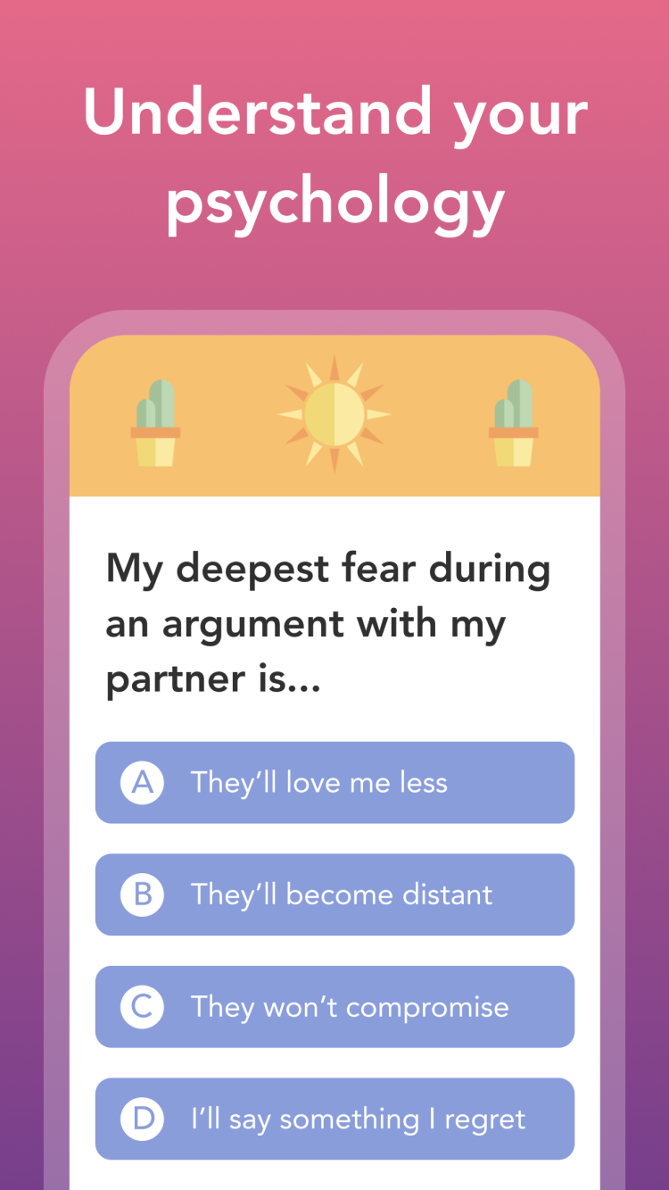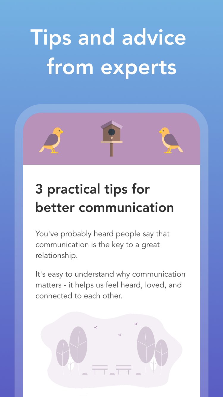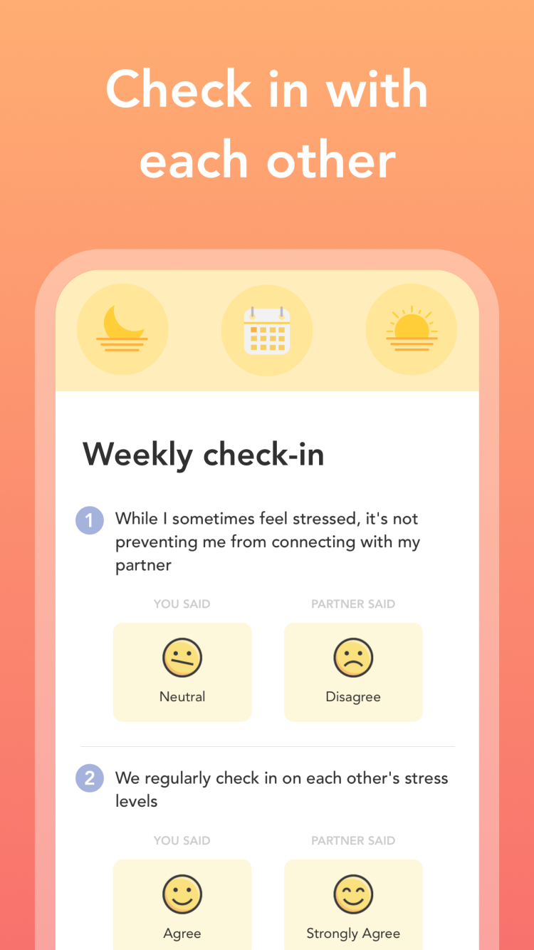 L'application Evergreen vous aide à construire des liens émotionnels plus profonds et à améliorer vos relations avec votre partenaire, nouveau ou de longue date. Grâce à une collection d'outils spécialement conçus et à des conseils relationnels éprouvés par des experts, vous surmonterez les obstacles à la communication, apprendrez à mieux vous connaître et vous sentirez plus apprécier. Mais surtout, rien de compliqué n'est requis. Evergreen propose une série de petites tâches qui s'intègrent parfaitement aux agendas les plus chargés, par exemple :
