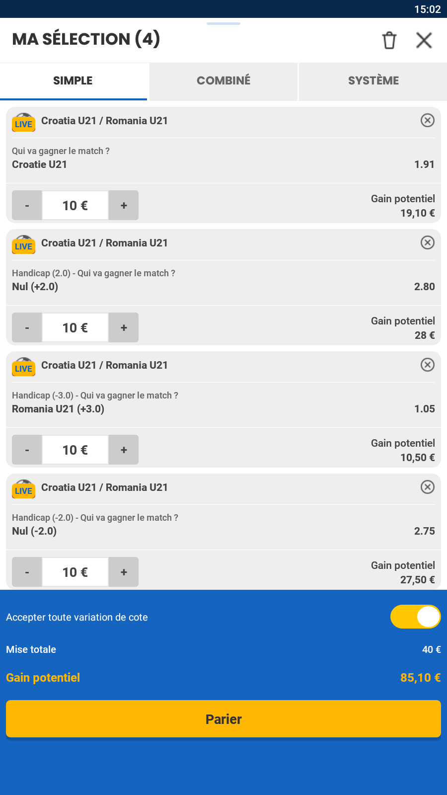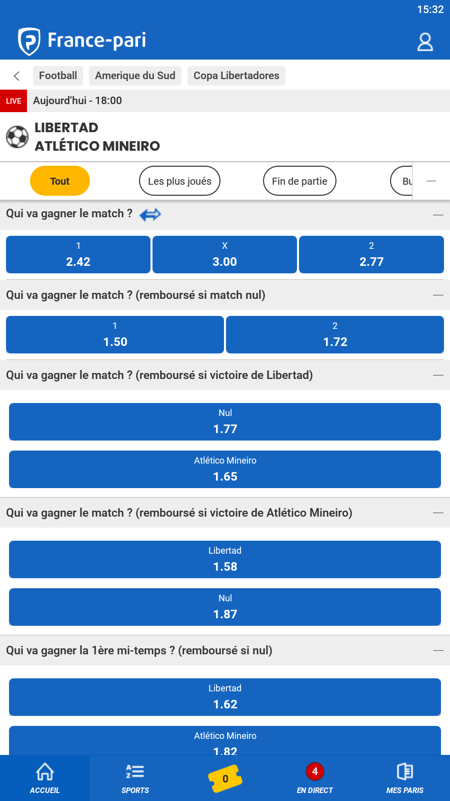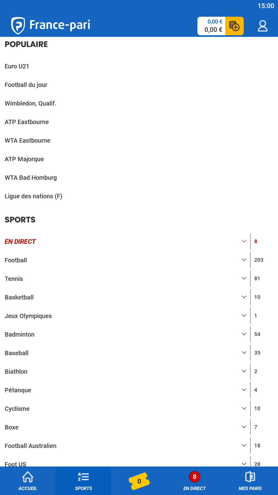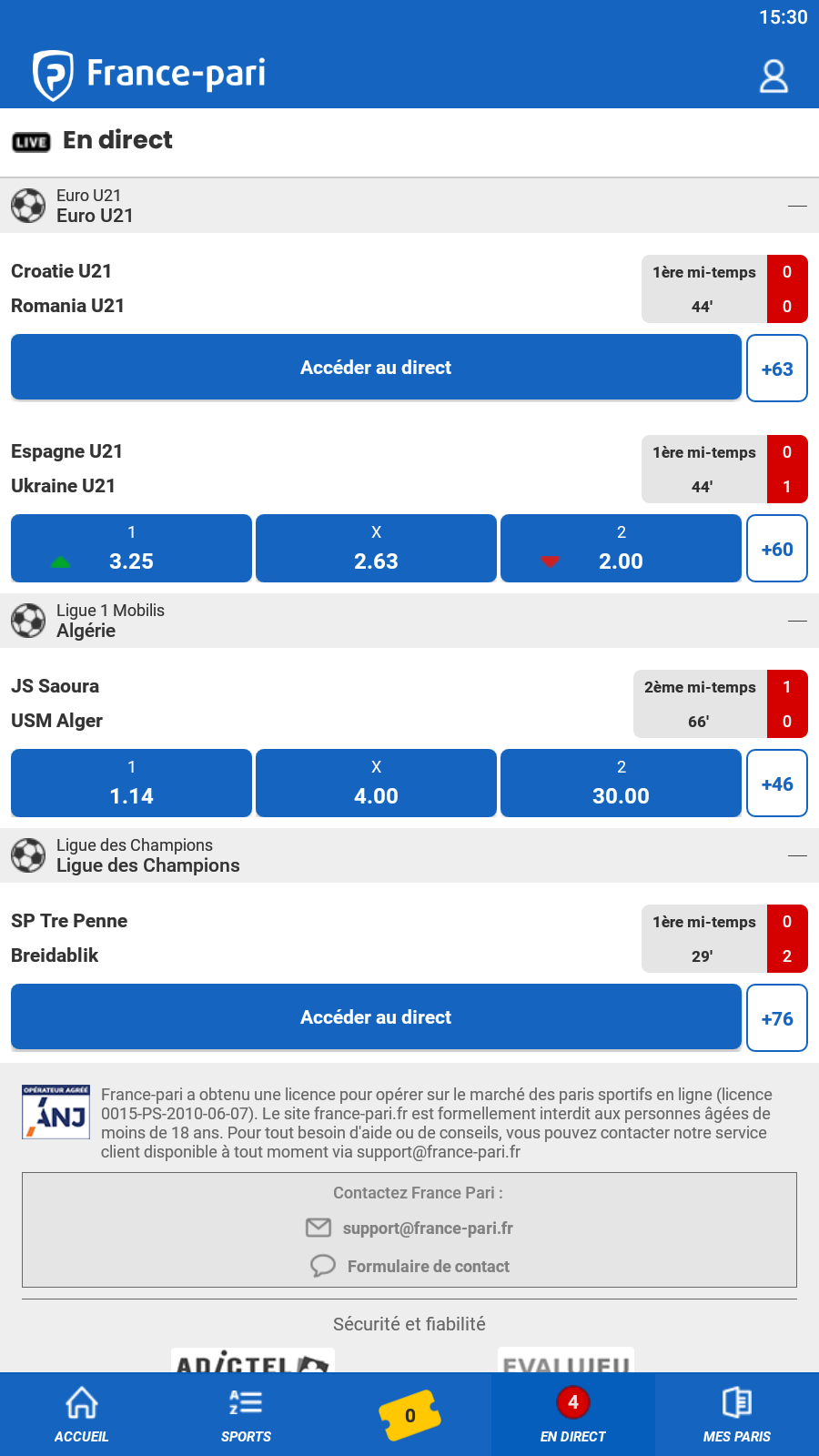 France Pari est saluée pour sa fiabilité exemplaire, offrant aux parieurs une expérience de jeu sans faille. Le bureau s'engage à satisfaire tous les goûts en offrant une large d'événements sportifs sur lesquels parier. Nous parlons de compétitions dans toutes les disciplines courantes, parier avec son portable appareil. Vous êtes sûr de trouver un tournoi qui vous convient. Essayez-vous parier avec son portable appareil et obtenez l’opportunité de gagner de l’argent en utilisant votre intuition.
