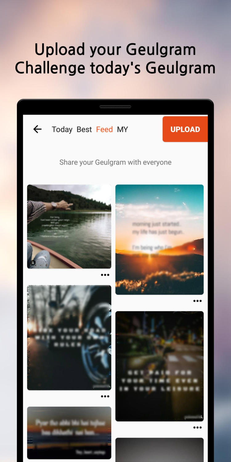 Geulgram est un programme mobile permettant de créer des images avec des citations inspirantes ou tout autre texte. Il vous aide à créer du contenu de qualité pour les réseaux sociaux ou simplement à exprimer vos pensées de manière originale.