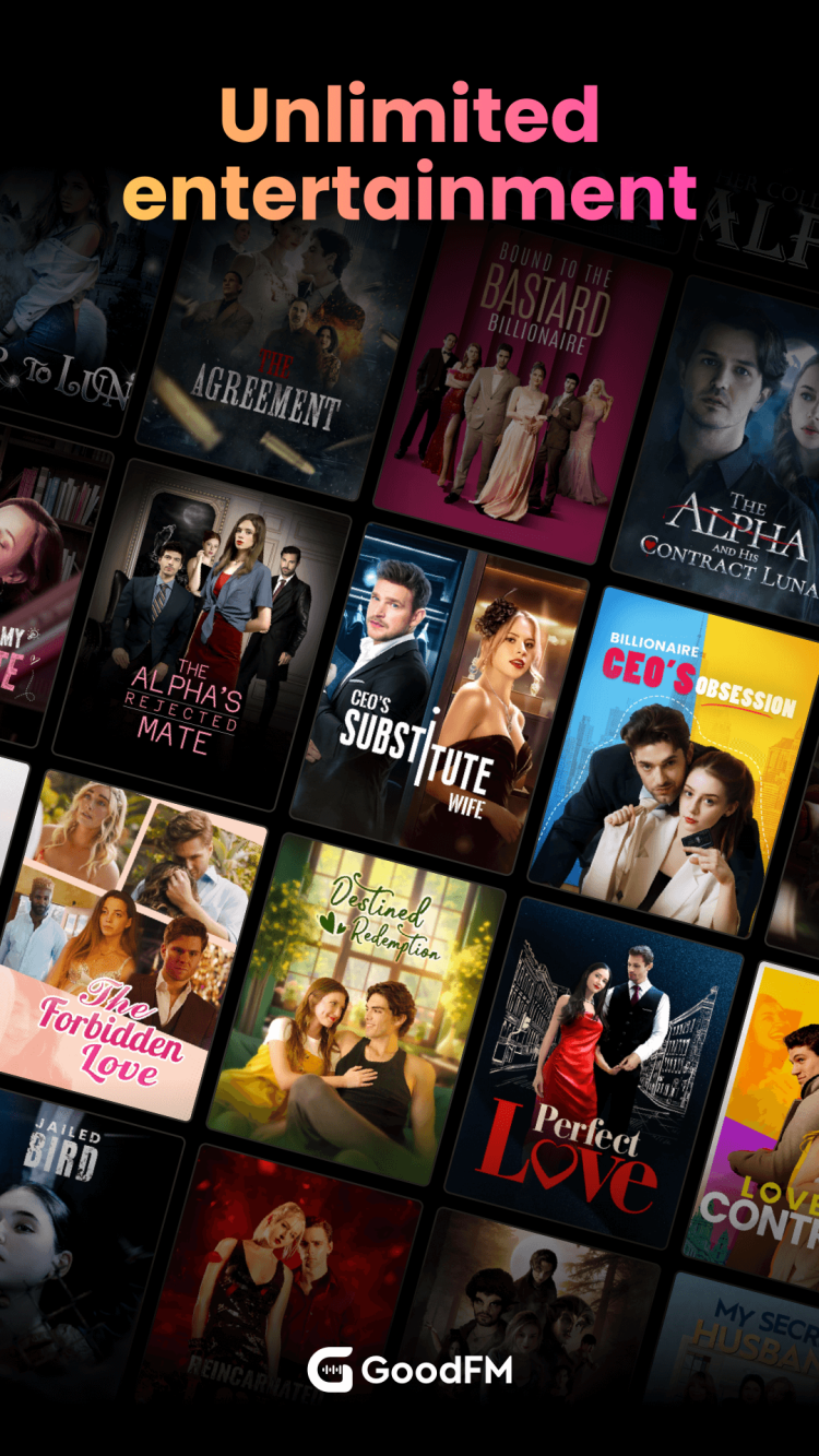 Malgré le « FM » dans son nom, cette application n'est pas conçue pour écouter la radio. Elle vous propose un vaste catalogue de séries télévisées avec des épisodes courts et une large sélection de livres audio de différents genres, pour tous les goûts. Que vous soyez fan d'histoires de loups-garous ou de romans romantiques sur des milliardaires, la dernière version de GoodFM vous comblera. Plus important encore, vous n'aurez plus besoin d'attendre une pause pour découvrir la suite de la vie de vos personnages préférés. Tous les livres audio de l'application proposent des chapitres courts d'environ 10 minutes seulement. Vous pouvez ainsi utiliser l'application à tout moment et où que vous soyez, tout en vaquant à vos occupations habituelles.