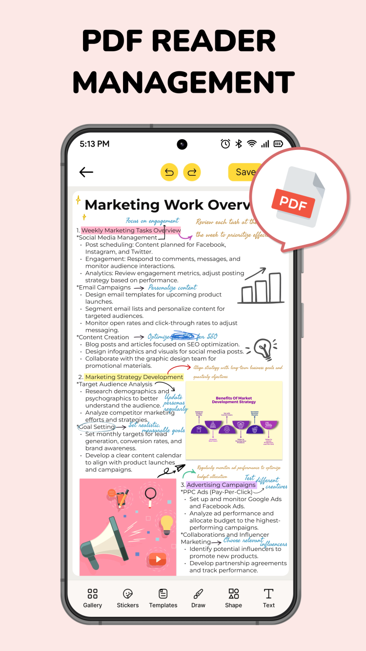 L'application Journal se distingue par sa capacité à gérer les fichiers PDF. Vous pouvez non seulement importer des documents PDF, mais aussi surligner les points clés et ajouter des annotations, le tout depuis une interface intuitive.