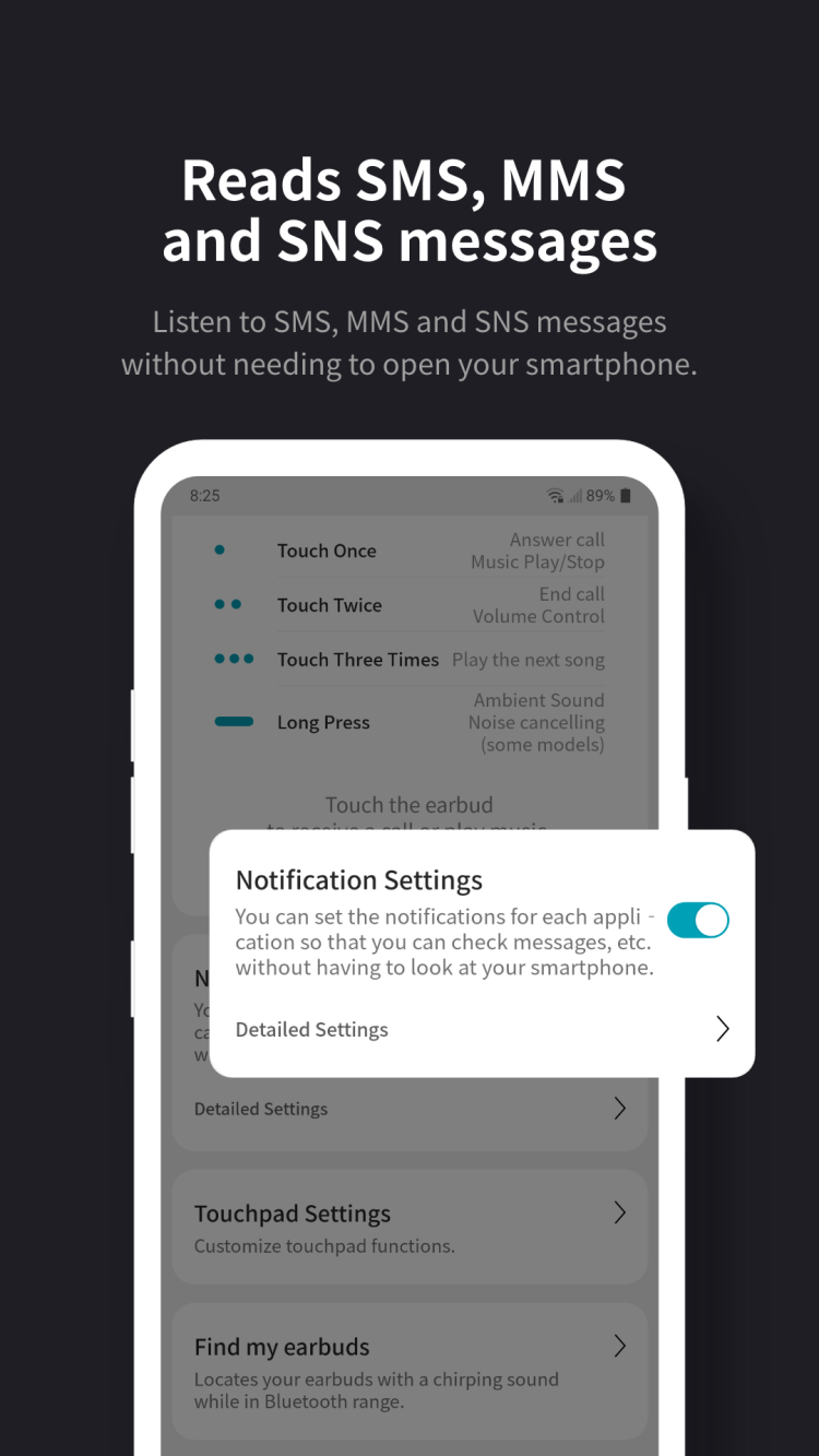 Un autre avantage important de LG TONE Free APK est la possibilité de personnaliser les gestes pour contrôler les écouteurs. Dans une section dédiée, vous verrez les gestes actuellement configurés et pourrez les modifier en quelques clics sur l'écran de votre smartphone. Veuillez noter que les gestes peuvent être configurés séparément pour chaque écouteur.