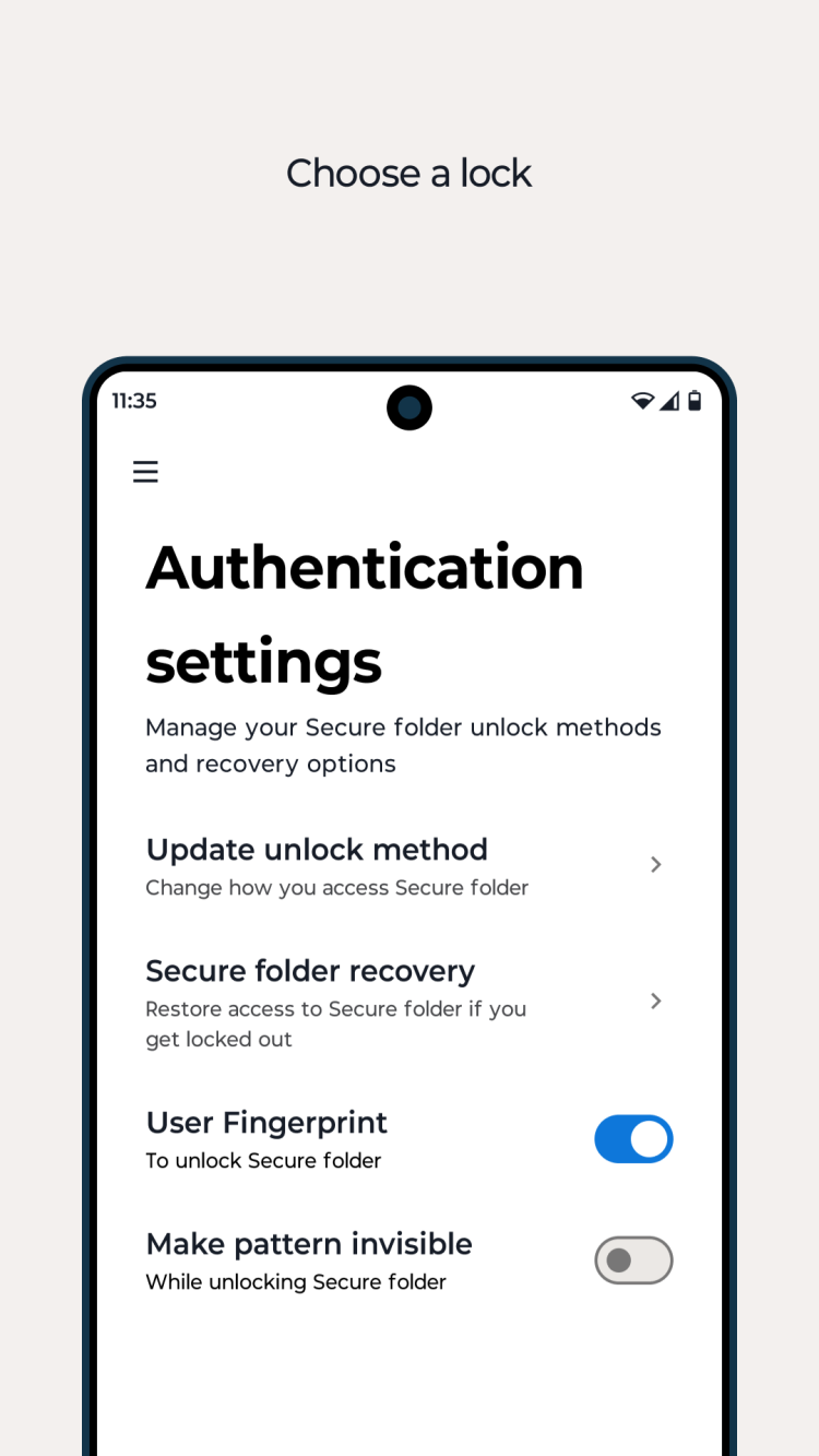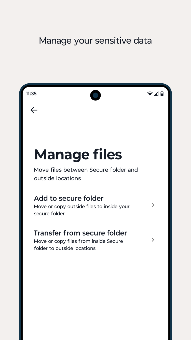 Vous cherchez un moyen simple et gratuit de protéger vos données personnelles et vos applications importantes contre tout accès non autorisé ? Nous vous recommandons de télécharger le Secure folder pour Android. Comme son nom l'indique, cet outil vous permet de créer un dossier privé où vous pouvez enregistrer toutes les applications dont vous avez besoin : des jeux aux réseaux sociaux, en passant par les applications bancaires et de santé. Son principal avantage est la possibilité de définir un verrouillage par empreinte digitale, ou un mot de passe, pour accéder au contenu du dossier. Ainsi, personne d'autre que vous ne pourra déverrouiller votre espace privé et accéder à vos précieuses données.
