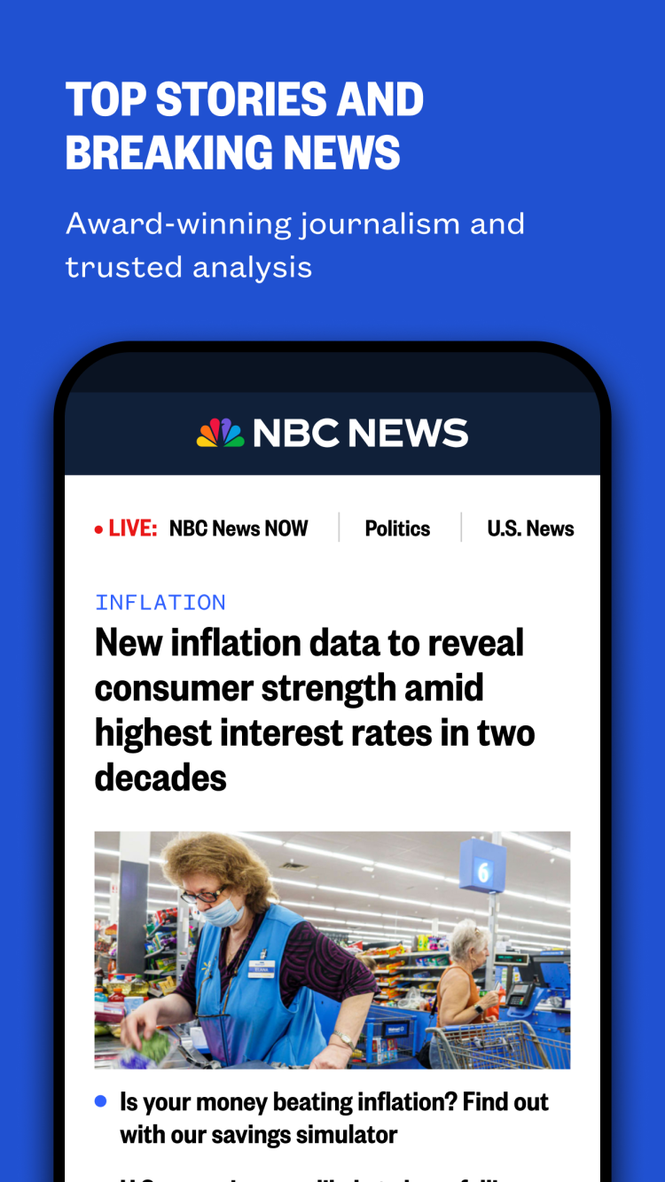 NBC News devient votre passerelle personnelle vers l'actualité, où que vous soyez. Conçue pour vous apporter les derniers titres, des reportages approfondis et des mises à jour en direct d'articles sur presque tous les sujets, l'application est accessible depuis une plateforme simple et intuitive. Personnalisez votre flux selon vos centres d'intérêt. Actualités locales ou internationales, articles sur le changement climatique ou tendances économiques : la dernière version de l'application vous offre tout ce qu'il vous faut. Plus important encore, l'application vous informe instantanément de la parution d'informations sur des sujets qui vous intéressent. Grâce à une section proposant de brefs aperçus de l'actualité en temps réel, vous restez informé de tout ce qui se passe autour de vous, même si vous n'avez pas le temps de lire des articles.