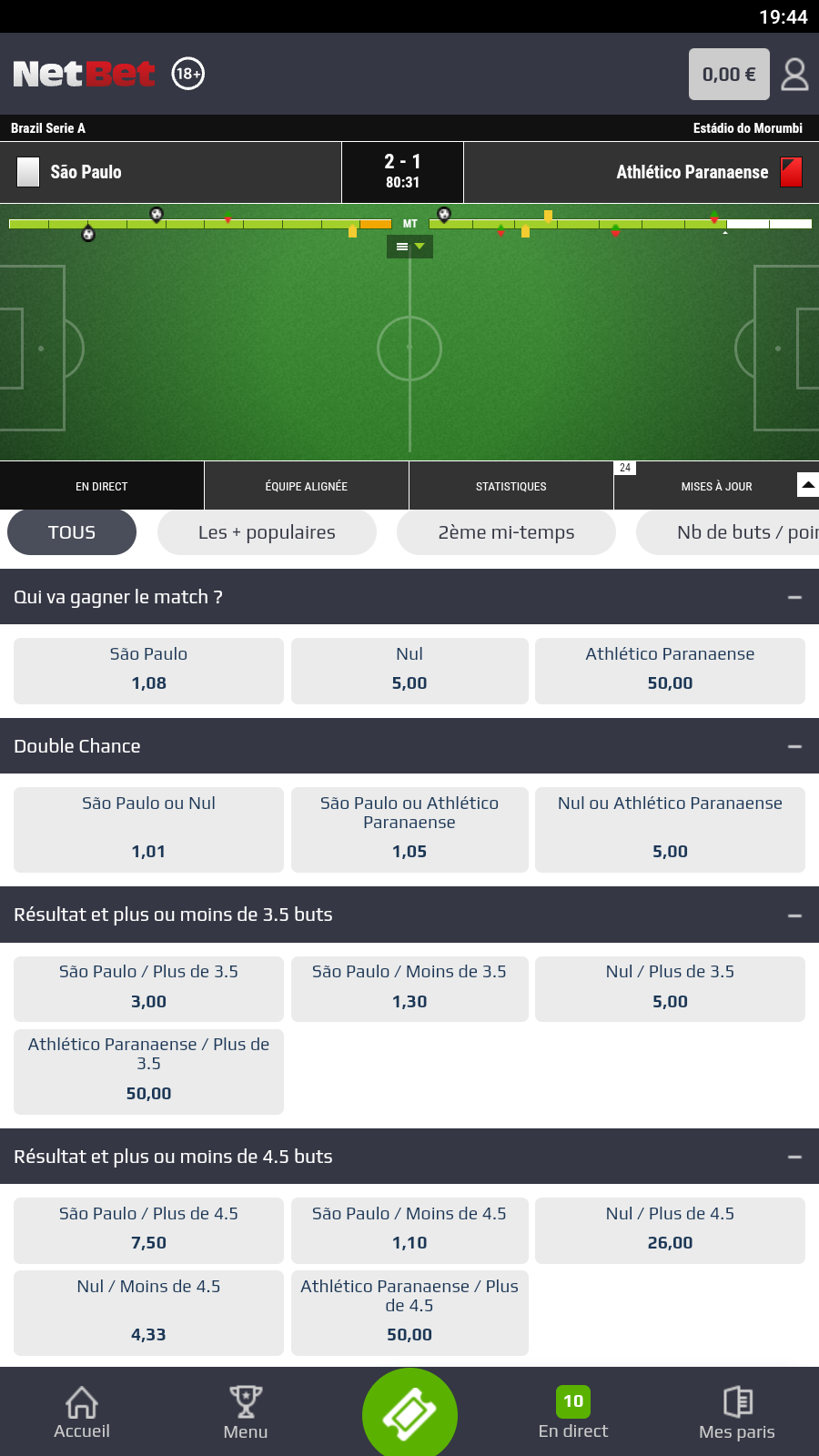 Si votre téléphone a accès à Internet, vous pourrez toujours utiliser l'application Netbet pour accéder à la plateforme. Recevez des notifications en temps réel sur les résultats des matchs depuis l’application NetBet. Ne manquer une occasion de parier sur votre équipe favorite. Les utilisateurs bénéficierez d'avantages exclusifs. Par exemple de bonus NetBet spéciales et freebets. Ce conçues spécifiquement pour maximiser votre plaisir et vos gains.