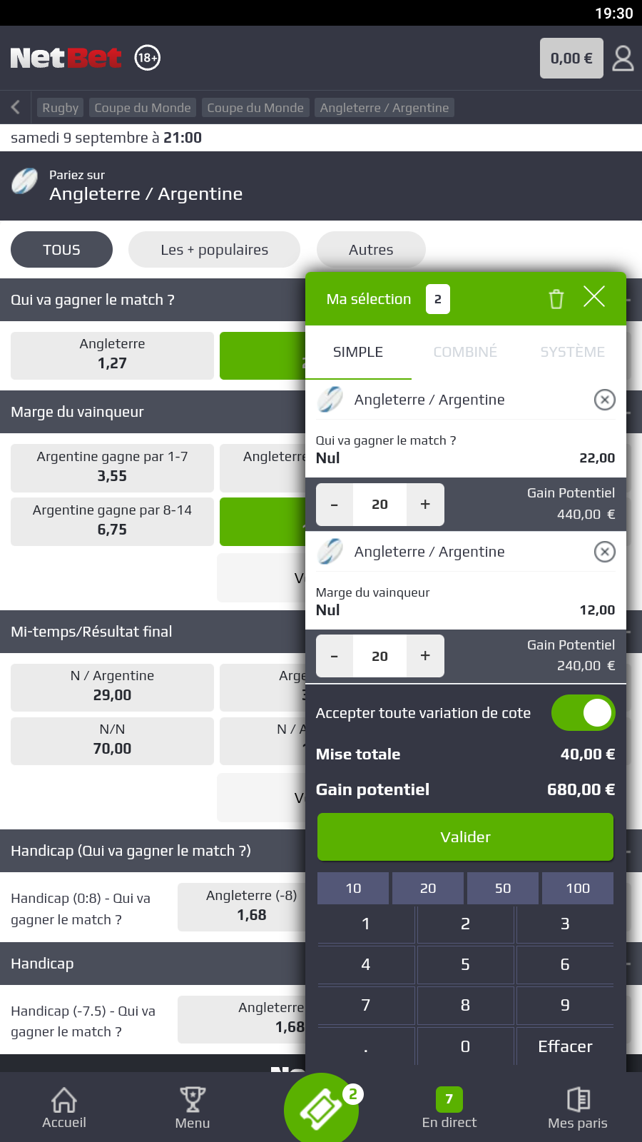 Appli NetBet est simple à utiliser même pour les amateurs de paris. Avec sa large gamme d'options de paris, elle couvre tous les sports populaires que vous aimez, tels que le football, le basketball, le tennis et bien d'autres encore. Vous pourrez parier via le site NetBet ou l'app. L’ensemble des fonctions ne changera pas. Vous pourrez non seulement placer des paris avant le début des matchs. Quoi de plus important, profiter des paris en direct, en regardant une vidéo en streaming. Suivez les statistiques et ajustez vos stratégies en fonction des performances des équipes. Tous les principaux types de paris sont pris en charge, y compris le score final et le nombre de buts ou des « grilles » uniques qui vous permettent de concourir pour le jackpot. De plus, l'app propose des cotes compétitives qui vous permettent de maximiser vos gains potentiels.