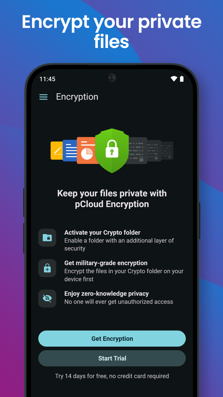 Vous manquez d'espace sur votre smartphone ? Aucun problème, car il existe déjà de nombreux services de stockage cloud fiables, dont pCloud. Avec cette application, vous pouvez obtenir 10 Go d'espace de stockage personnel gratuitement ou payer pour de l'espace supplémentaire. Avec pCloud, stockez vos photos, musiques, vidéos, documents et autres données en toute sécurité et accédez-y facilement depuis n'importe quel appareil, mobile ou de bureau, sans compromis sur la vitesse ni la confidentialité. De plus, toutes les données des utilisateurs sont stockées sur des serveurs sécurisés avec cryptage côté client grâce à pCloud Crypto, qui garantit la protection de vos données contre toute interception et leur inaccessibilité par des tiers. De plus, lors du partage de fichiers volumineux, le programme offre des mesures de sécurité avancées : définition d'un mot de passe d'accès ou d'une date d'expiration.
