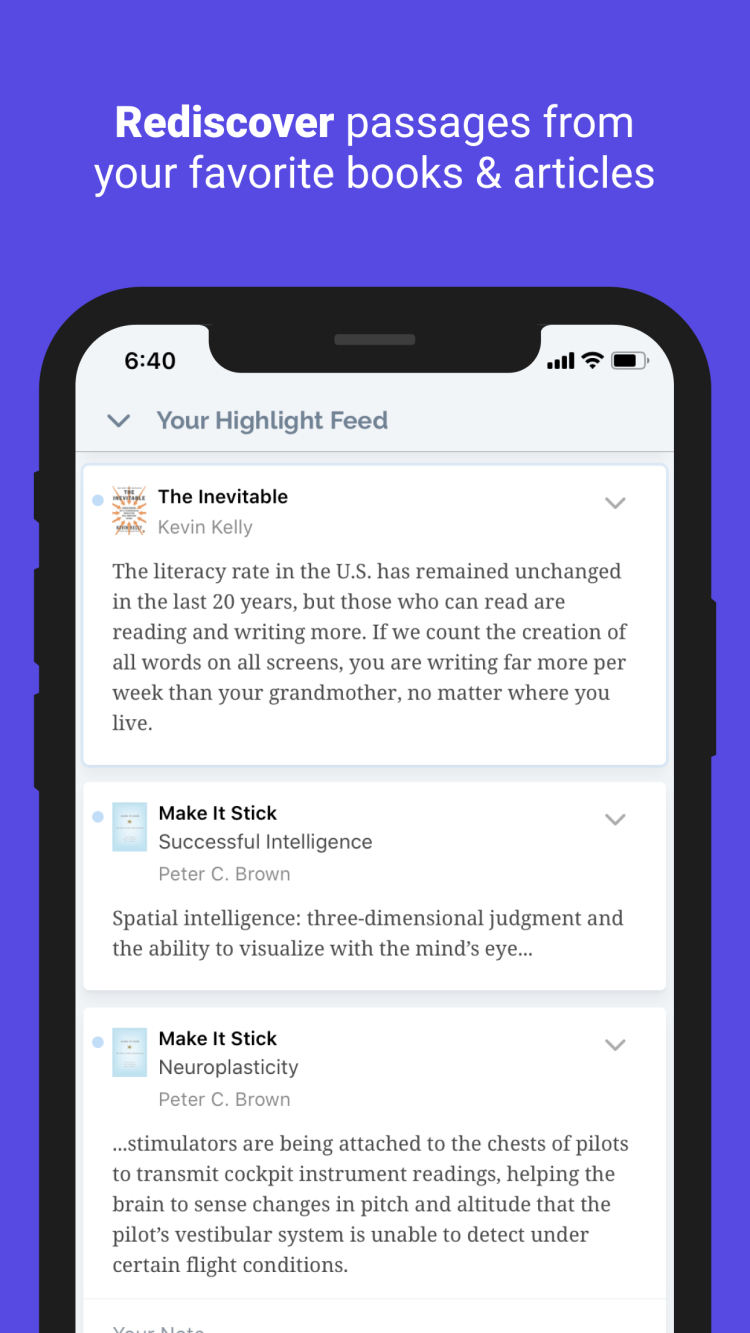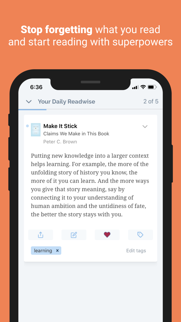 Readwise est une application mobile conçue pour vous aider à mémoriser les idées les plus importantes de vos livres. Qu'il s'agisse de fiction ou de littérature éducative, le programme vous aidera à mettre en évidence les idées les plus importantes et à vous les rappeler régulièrement.