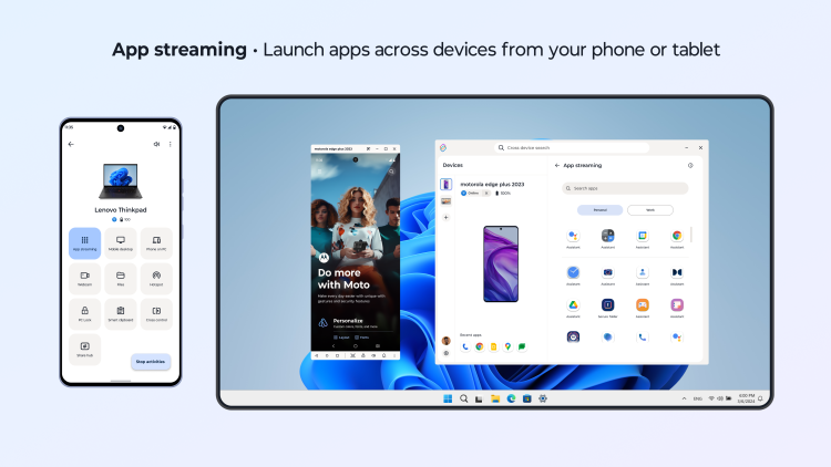 Smart Connect est bien plus qu'une simple application compagnon. C'est votre centre de contrôle intelligent, qui fait le lien entre vos smartphones et tablettes Motorola et vos PC Windows. Conçu pour faciliter l'appairage des appareils compatibles, il permet également de partager ou de diffuser les données dont vous avez besoin pour le travail ou les loisirs. Par exemple, Smart Connect vous permet d'accéder à vos fichiers sur n'importe quel appareil de votre écosystème. Trop de données pour trouver le fichier souhaité manuellement ? Aucun problème, l'application dispose d'une puissante fonction de recherche, compatible avec tous les appareils connectés.