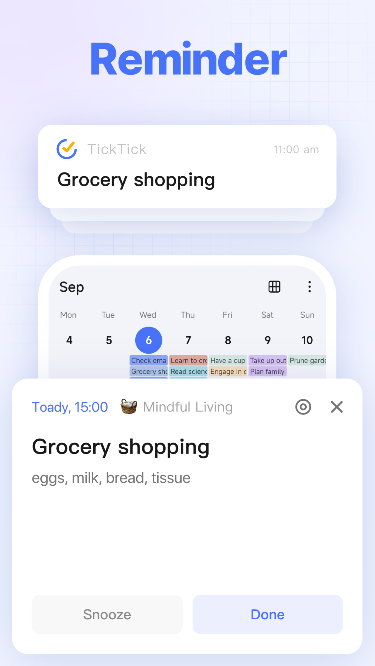 Télécharger TickTick pour Android et prenez le contrôle de votre journée en toute sérénité. Veuillez noter que certaines fonctionnalités de l'application nécessitent un abonnement premium.