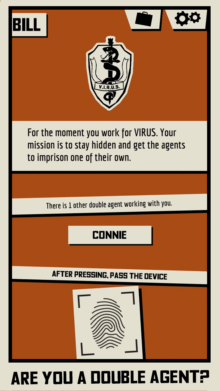 Vous cherchez un jeu mobile qui vous permettra non seulement de vous amuser, mais aussi de stimuler votre cerveau ? Triple Agent est le choix idéal. Conçu pour les petites équipes de 5 à 7 personnes, ce jeu rappelle le bon vieux jeu de Mafia. Vous devrez jouer un rôle et tenter de détourner l'attention des autres joueurs, tout en accomplissant des missions secrètes. Le principe est le suivant : les joueurs indiquent leur nom à tour de rôle et le système leur attribue des rôles. Certains deviennent des agents des services secrets, d'autres des agents doubles du virus. Leur nombre dépend du nombre total de joueurs.