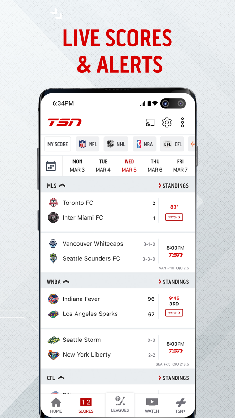 Restez au courant de l'actualité sportive grâce à l'application TSN pour Android. C'est votre source fiable de sports en direct, de nouvelles de dernière minute et d'analyses d'experts, toujours à portée de main. Avec la dernière version de cette application, vous accédez à une couverture complète de The Sports Network, l'un des principaux diffuseurs sportifs au Canada, vous permettant ainsi de suivre en permanence les succès de votre équipe préférée. Pour ne rien manquer d'important, sélectionnez vos équipes et ligues préférées dès le premier lancement. Ainsi, TSN pour Android créera un flux personnalisé avec les événements qui vous intéressent. Que vous soyez amateur de hockey, de football ou de Formule 1, avec TSN, toutes les informations qui vous intéressent seront toujours disponibles sur l'écran de votre téléphone intelligent.