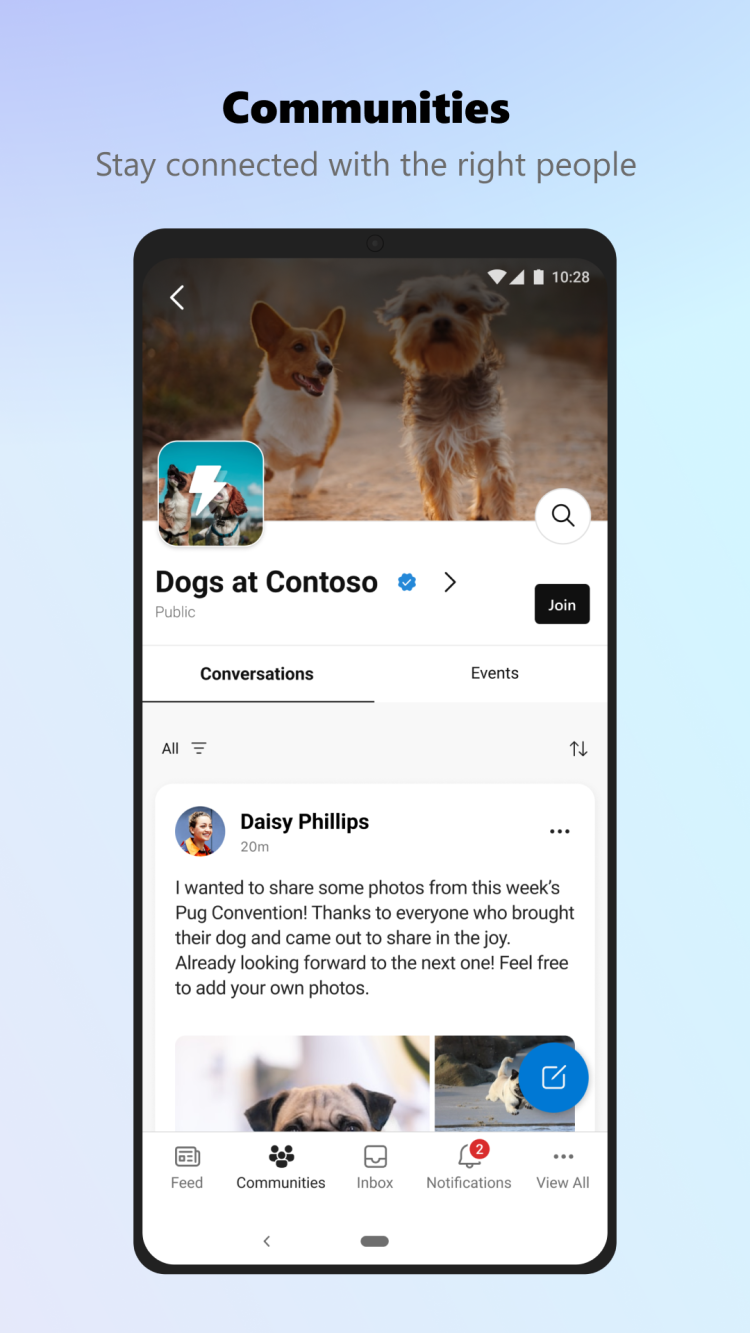 Un autre avantage de Viva Engage APK est la possibilité de participer à des événements en direct. Où que vous soyez, en quelques clics sur l'écran de votre smartphone, rejoignez des masterclasses et recevez les annonces de la direction de l'entreprise pour ne rien manquer d'important.