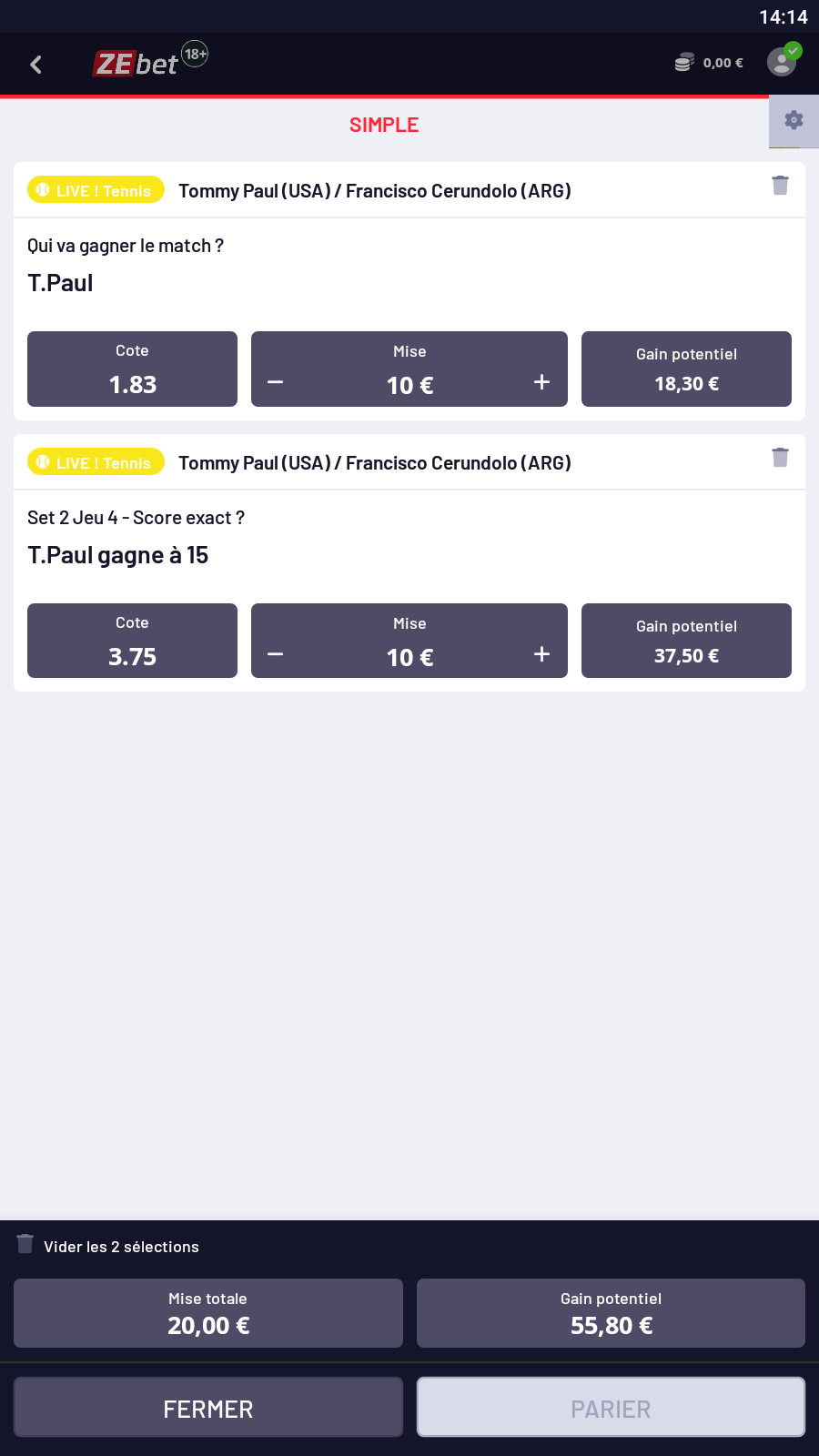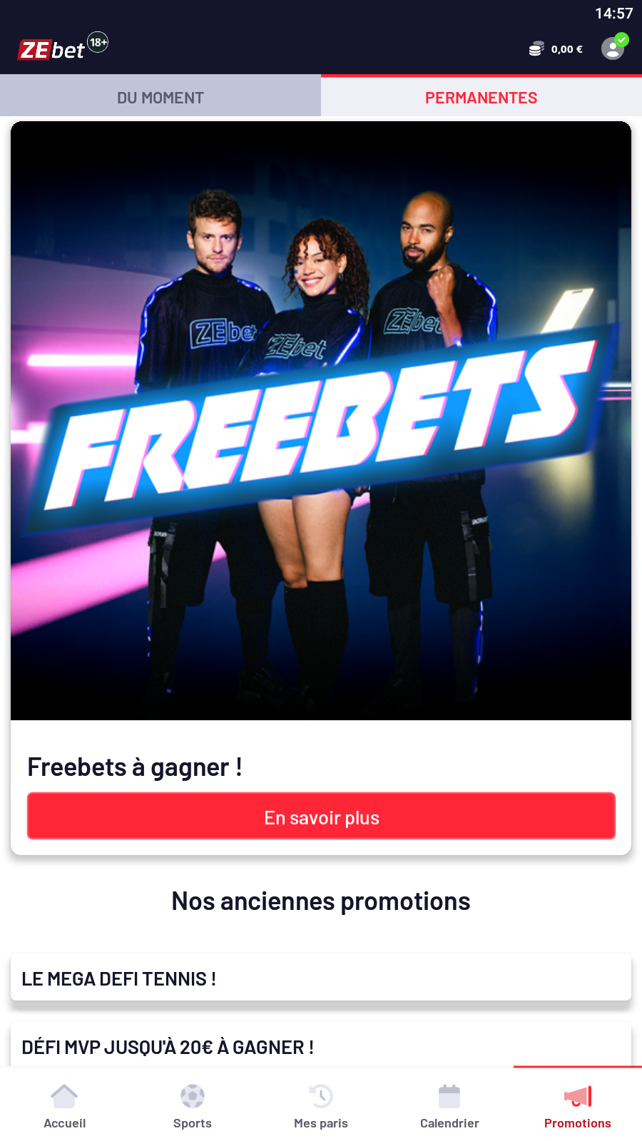 Malheureusement, la plateforme ne permet pas de jouer au casino en ligne, il n'y a donc pas de poker dans Zebet app. Mais la riche sélection d'événements sportifs compense largement cette limitation. Les utilisateurs de l'application bénéficient également d'offres promotionnelles exclusives. Des bonus Zebet de premier dépôt généreux, des paris gratuits et bien d'autres surprises vous attendent pour maximiser vos gains. Entrez votre code promo Zebet si vous en possédez un. Voici les conditions à remplir pour débloquer le bonus de bienvenue. Rendre à la rubrique du site officiel de l'entreprise consacrée à l'offre mobile et promotions pour trouver le code promo actuel. Vous devez maintenant créer un compte Zebet et confirmer votre identité. Lors du processus de création de compte, entrez le code promo. Vous pourrez bénéficier du bonus offert pour obtenir votre première victoire. Que vous soyez un parieur ou passionné ou un amateur, l'application Zebet vous offre une expérience complète à la fois paris sportifs, le tout accompagné d'avantages et de bonus irrésistibles. Ne manquez pas cette occasion de vivre des moments excitants et de remporter d'incroyables récompenses.