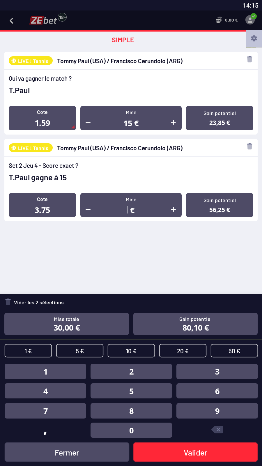 Appli mobile Zebet en décembre 2023 se distingue en tant que plateforme de paris sportifs en ligne. Il offre une abondance d'options de paris dans une multitude de sports passionnants. Par exemple, le football, le tennis, le basketball, le rugby et bien d'autres encore. Fort de ses années d'expérience et de sa réputation solide dans l'industrie, Zebet s'est hissé au rang d'acteur de confiance pour les parieurs du monde entier. Avec Zebet, vous pouvez vous concentrer pleinement sur l'excitation et le frisson du jeu, en laissant les soucis derrière vous.