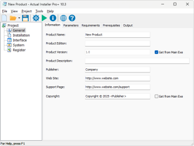 Actual Installer est un installateur professionnel qui vous permet de créer facilement des programmes d'installation de haute qualité pour vos applications Windows. En quelques minutes seulement, vous pouvez créer un programme d'installation complet à fichier unique, prêt à être distribué sur Internet ou sur des supports amovibles. Votre programme d'installation disposera de toutes les fonctionnalités de base d'un programme d'installation : installation multilingue, logos, accords de licence et textes ReadMe, création de raccourcis, modification du registre et des fichiers INI, configuration requise, associations de fichiers, ActiveX, bibliothèque de types, enregistrement des économiseurs d'écran et des polices, commandes d'exécution, désinstallation et bien plus encore.