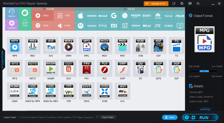 WonderFox DVD Ripper Speedy est un programme gratuit de copie de DVD pour Windows qui vous aide à sauvegarder vos DVD en les convertissant en fichiers vidéo MPG de haute qualité. Il prend en charge la plupart des DVD, y compris ceux avec des codes régionaux ou une protection contre la copie, et effectue la conversion en seulement 5 à 10 minutes, sans perte de qualité notable.